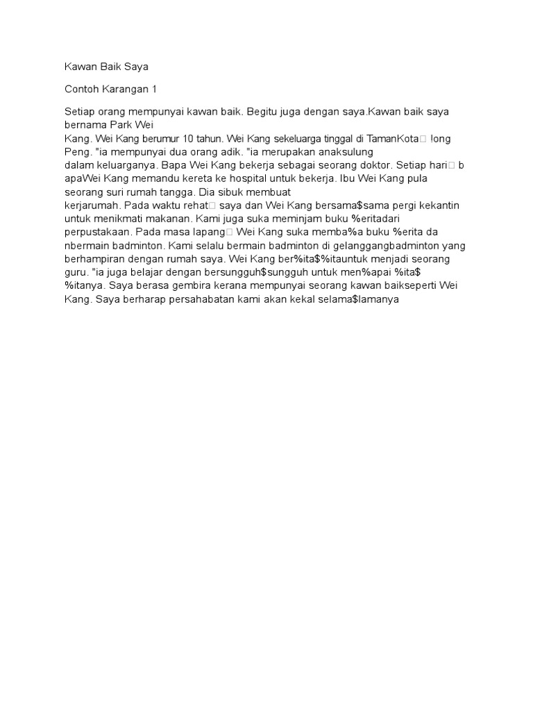 Rakan baik saya norella adalah kawan saya yang terbaik di sekolah. Contoh Karangan Hobi Saya Bermain Badminton - Karangan Tuition 456 Copy Docx Tahun 4 Karangan Sahabat Baik Saya Kawan Karib Saya Kerangka Karangan 1 Pendahuluan Pengenalan Diri Nama Course Hero By. Sahabat karib saya belajar di SJK C Pu Sze Skudai.